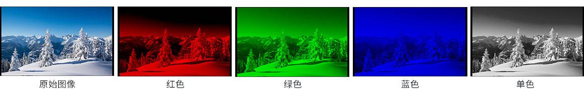 单色显示用于辅助调整摄像机色彩设置。在单色显示模式下,用户可以切换用红色、绿色、蓝色或者单色来驱动像素点,在此模式下可以更快更准确的调整画面的色调饱和度。