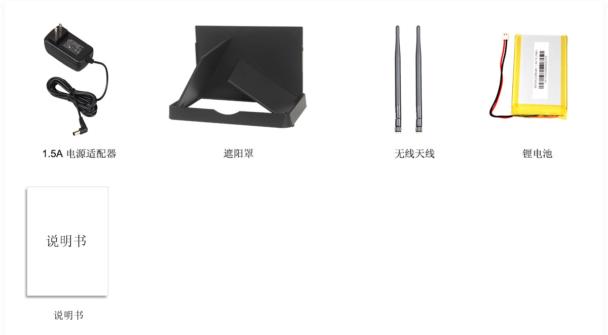 HDMI、Audio、Video、RF 输入,Video 、3.5mm 耳机孔输出,DC 输入,USB 数据升级端口,TF 卡插槽