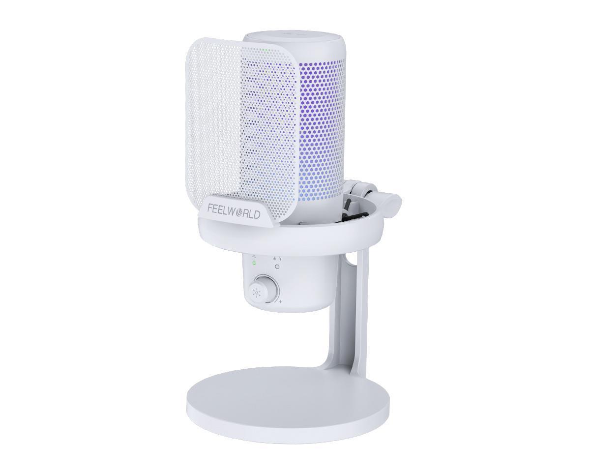 FEELWORLD VM1 USB电容游戏麦克风一键降噪 静音 心形指向 RGB灯效 桌面支架款(白色)(2024-10-25)