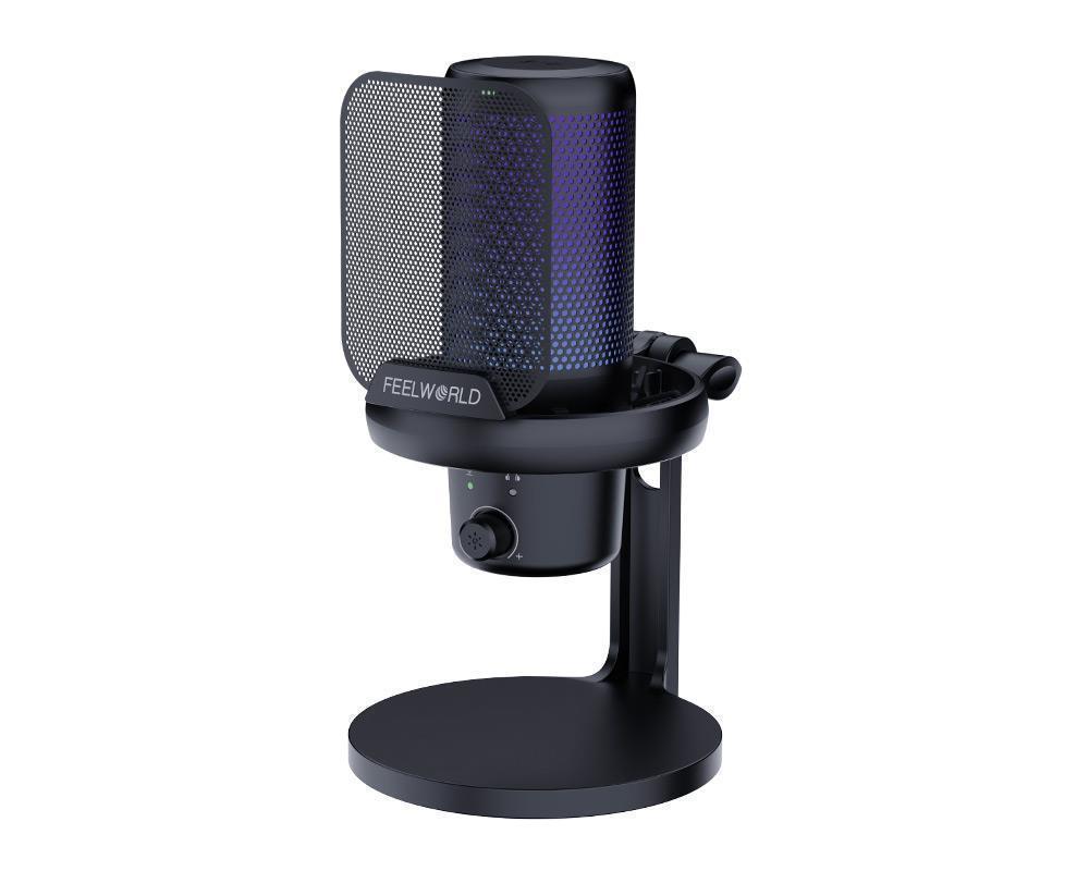 FEELWORLD VM1 USB电容游戏麦克风一键降噪 静音 心形指向 RGB灯效 桌面支架款(黑色)(2024-10-25)
