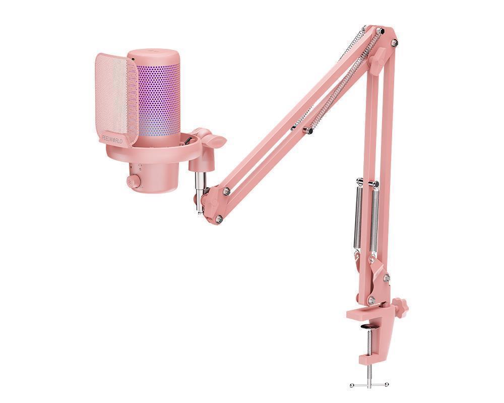 FEELWORLD VM1 USB电容游戏麦克风一键降噪 静音 心形指向 RGB灯效 悬臂支架款(粉色)(2024-10-25)