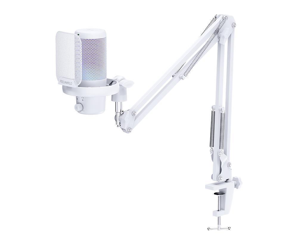 FEELWORLD VM1 USB电容游戏麦克风一键降噪 静音 心形指向 RGB灯效 悬臂支架款(白色)(2024-10-25)