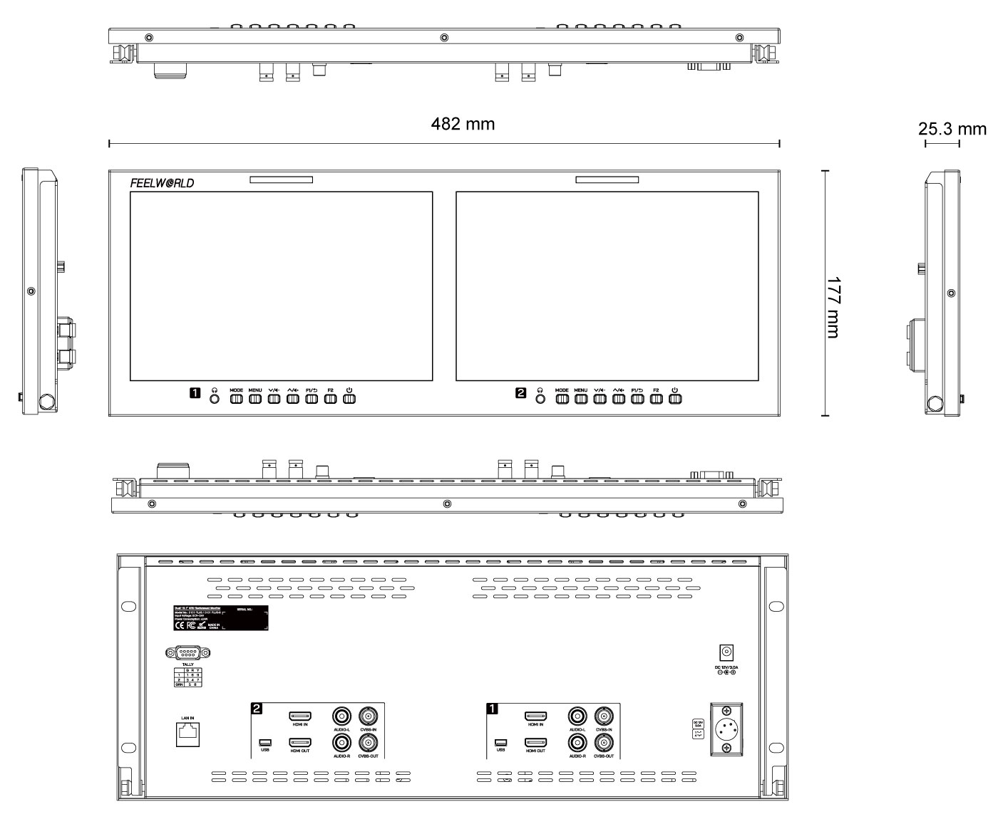 FEELWORLD D101 PLUS-H非常适合广播级监看工作,配备CVBS,4K HDMI等视频接口,并配有两块独立的10.1英寸显示屏可同时监看两个不同的摄像机。所有都包含以太网接口,连接网络后可通过软件在电脑上对监视器进行控制。4RU机架式设计使其能轻松安装于视频墙或转播车,是播出工作、后期制作、飞行箱系统、转播车的理想监看解决方案。