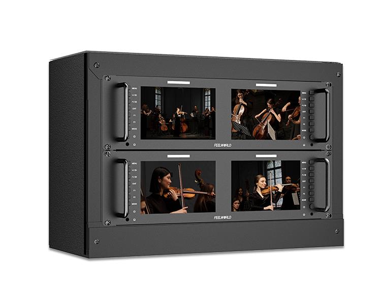 无论您需要在何地进行4K HDMI监看,FEELWORLD D71 PLUS-H是理想的选择。它配有两块独立的7英寸显示屏可同时监看两个不同的摄像机,3RU机架式设计使其能轻松安装于视频墙或转播车,适合播出工作、后期制作、现场监看、飞行箱系统、转播车等场合。