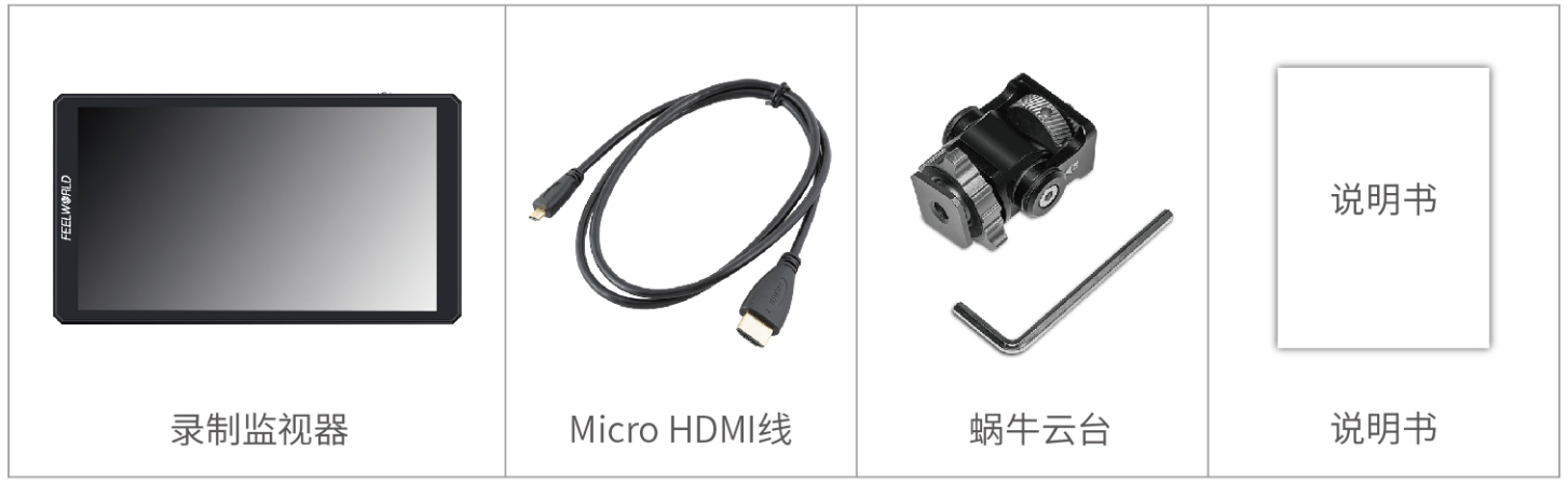 注意:由于不同品牌型号的相机,正常工作需要的功率不同,可能出现相机无法正常拍照或者录像的情况,所以在使用电池给监视器供电的时候,为了能够正常使用相机,建议使用大容量充满电的电池,最好不要接假电池来使用。