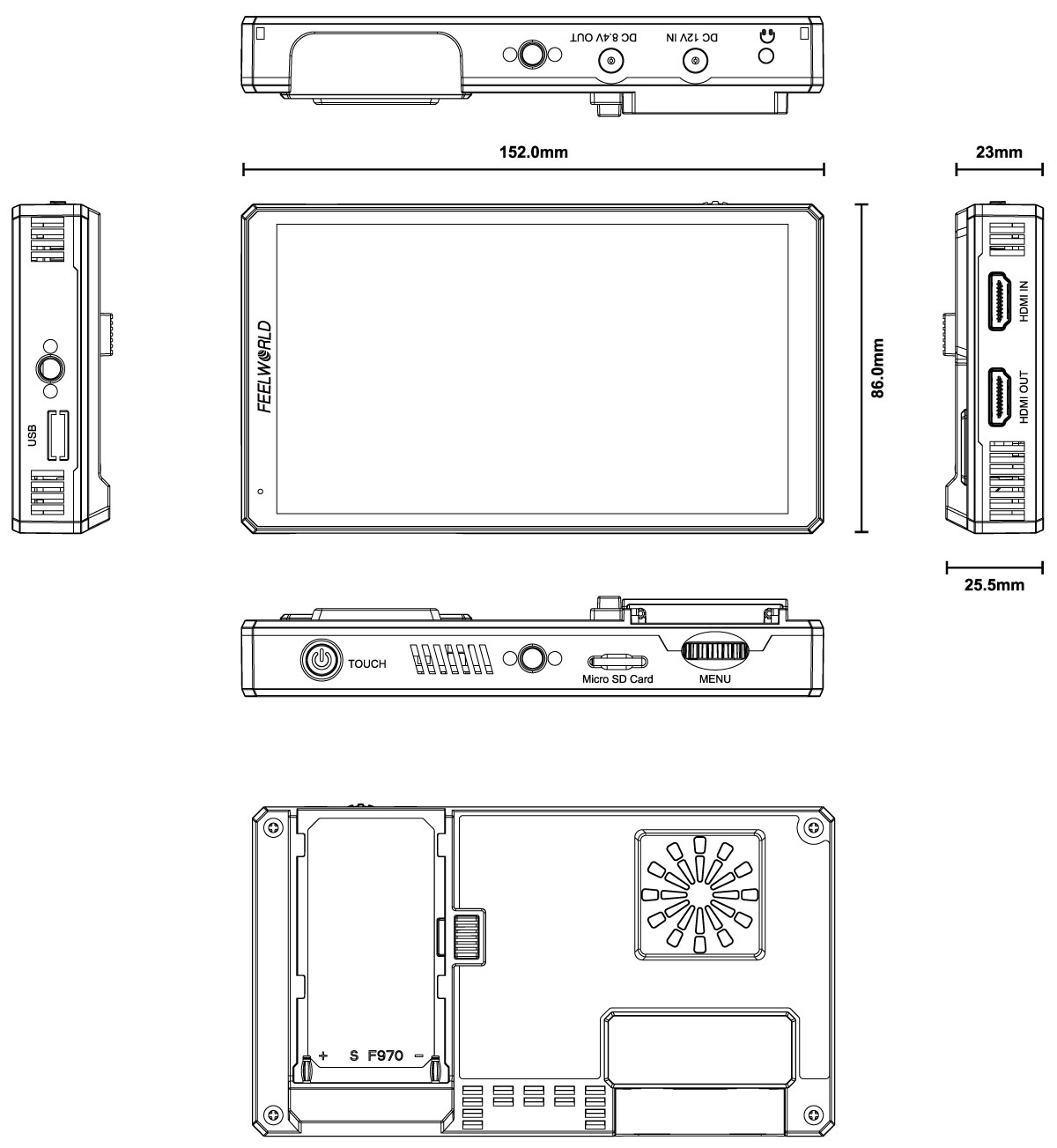 * 灵活供电方式:DC 12V电源输入,NP-F电池扣板