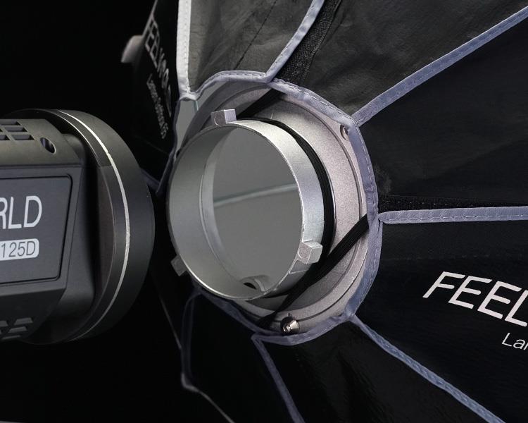 柔光球带有张力的快速释放设计,可以轻松实现快装快拆,让您快速完成布光。