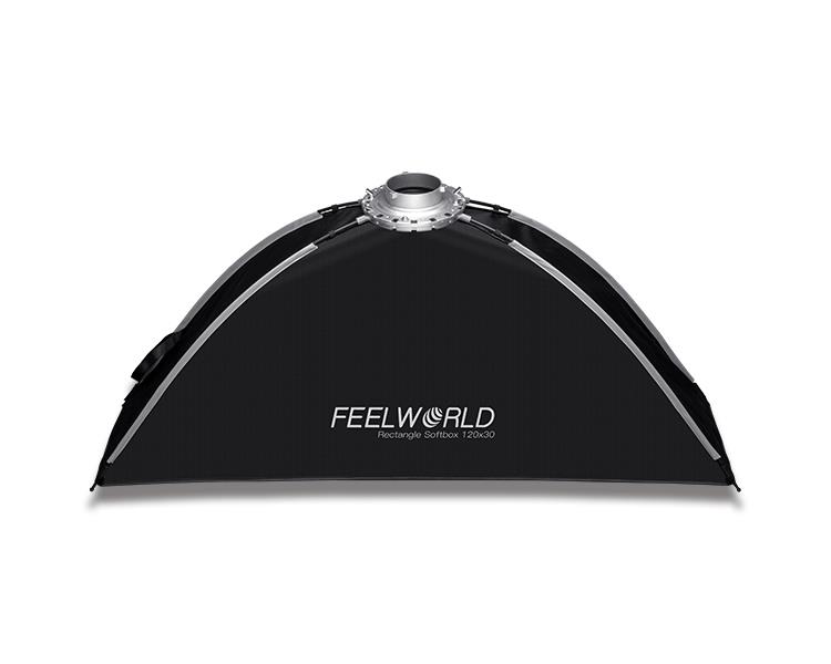 FEELWORLD FSR120是尺寸为30x120cm的长条形柔光箱。其狭长的矩形柔光面可完美满足全身人像拍摄时打光需求,确保人像全身都能受到同样的柔光照射,是人像拍摄、产品拍摄、直播间、电商拍摄的绝佳选择。