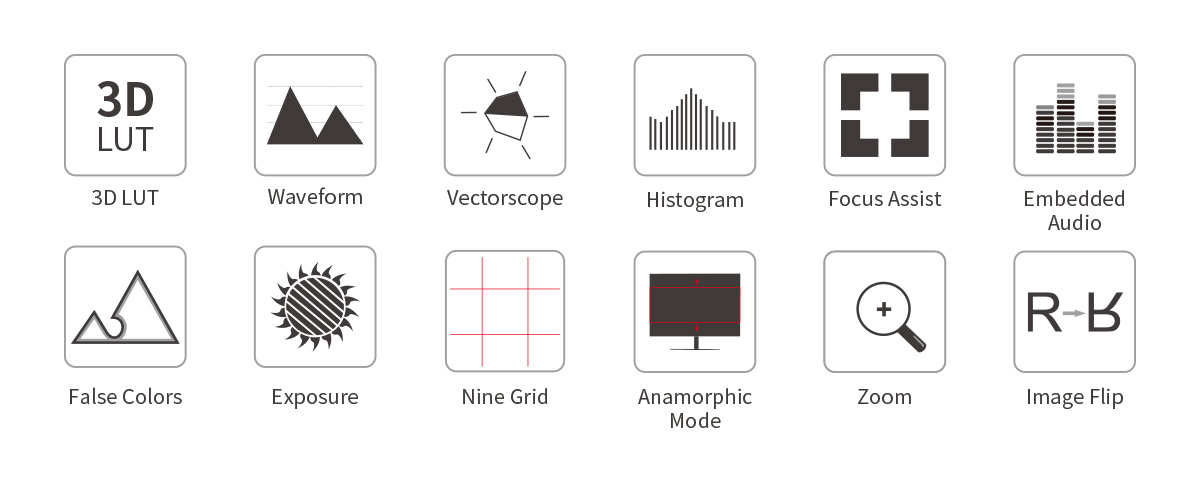 You can choose 1.3x, 2.0x, 2.0x mag, User-defined adjustment: 1.20x~2.00x. Built-in selection of no squeeze, 1.3× or 2.0× allows you to use anamorphic lenses or adapters and see the image unsqueezed, even if your camera does not de-squeeze in camera. A 2.0× mag mode, magnifies the center of your image so you can check the focus of your scaled image.