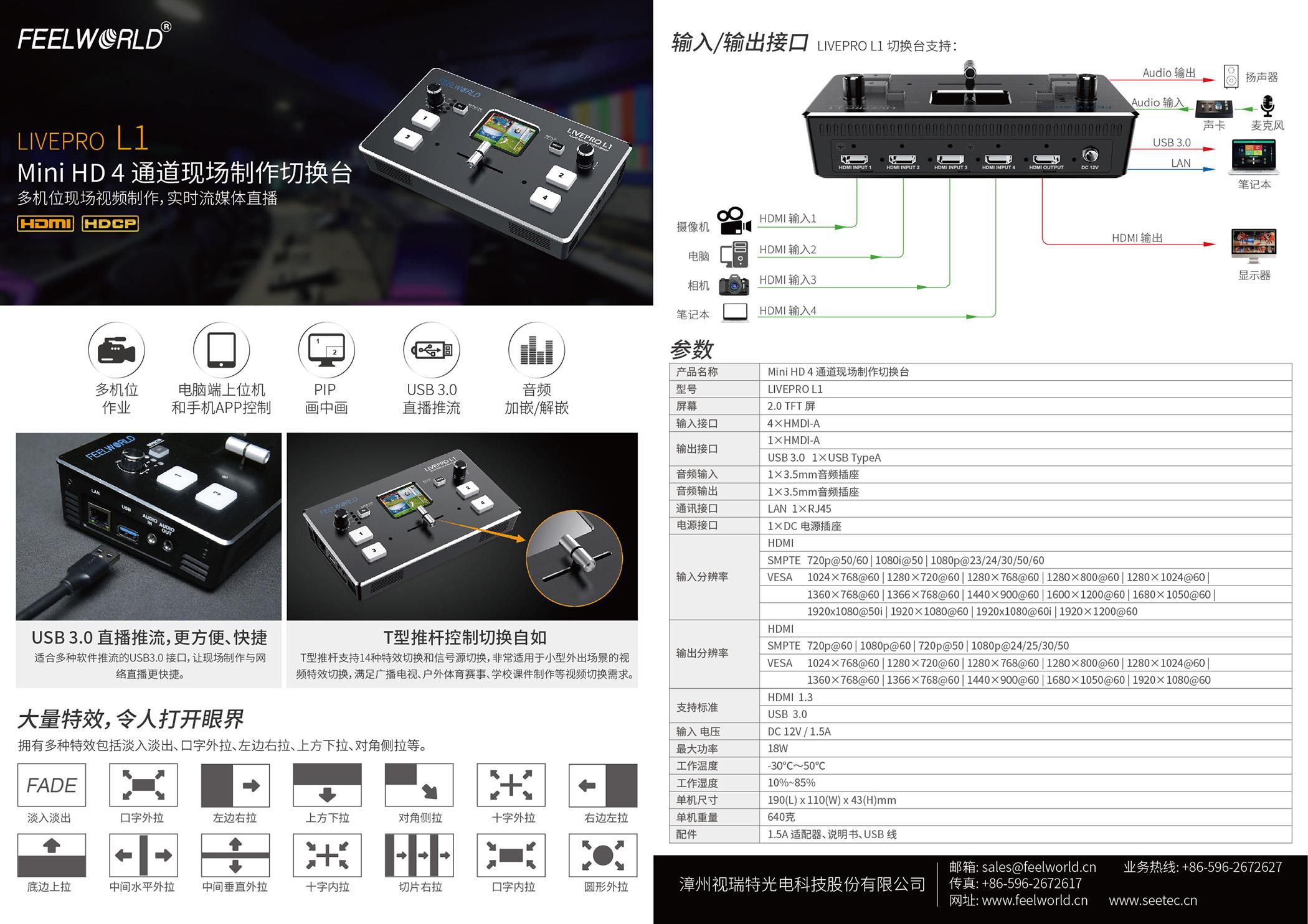 FEELWORLD L1视频切换台可升级色度抠图固件V2.01