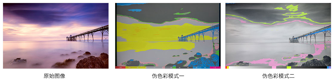 伪色彩用于协助调节摄像机曝光参数,可以直观的观察和计算视频中的亮度级别,将0-100%亮度值映射为伪色彩,以此来提示摄像师是否需要调节摄像机的曝光参数。
