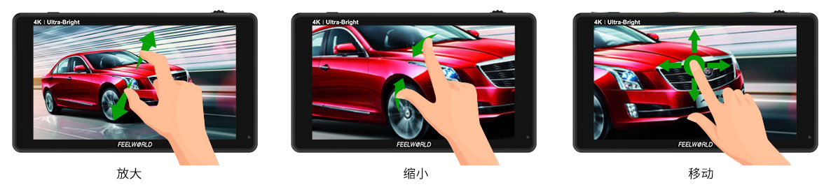 图像放大是将图像放大100%~300%的高品质特写。触摸面板可以帮您快速实现放大,并且放大后进行缩小或者移动画面。