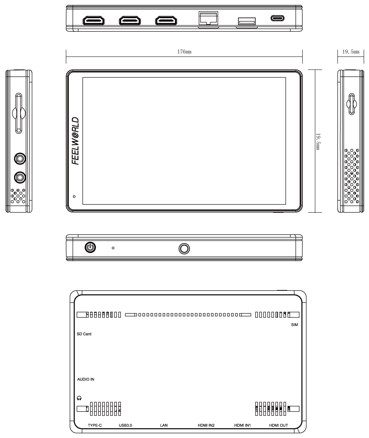 拥有7英寸1920x1200全高清分辨率触摸屏幕,支持高达1080P@60Hz, 直播画面清晰流畅。