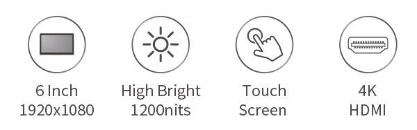 Screen Size: 6" IPS Resolution: 1920x1080 pixels Aspect ratio: 16:9 Brightness: 1200cd/m² |