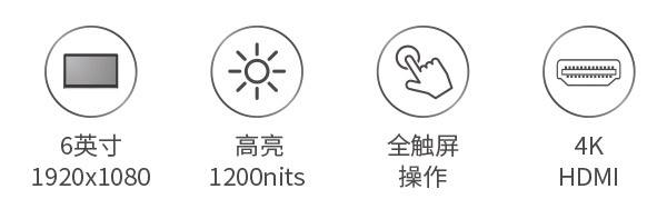 尺寸: 6" IPS 分辨率: 1920x1080 pixels 屏幕比例:16:9 亮度: 1200cd/m² |