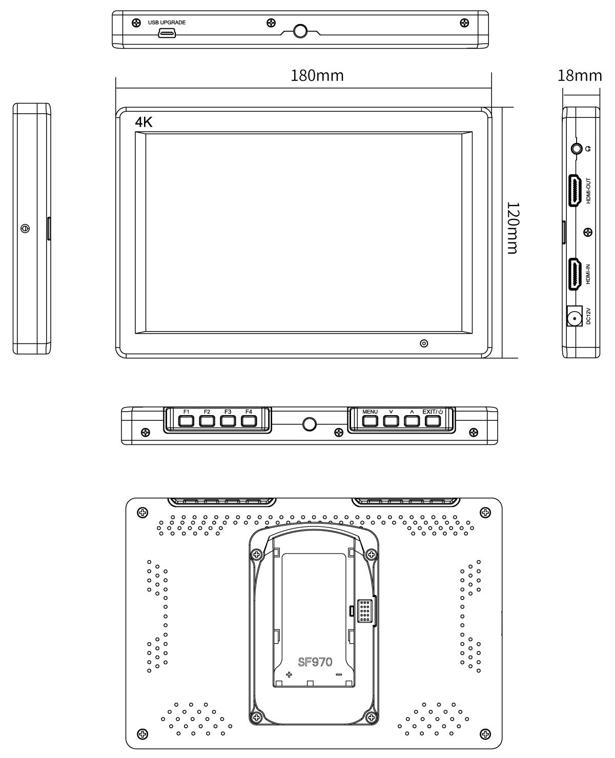Easy operate button design, allowing you immediately to improve the shooting efficiency. 4 custom shortcut function keys F1~F4, can fast access to the functions you needs, focus assist, false color, exposure, embedded audio etc.