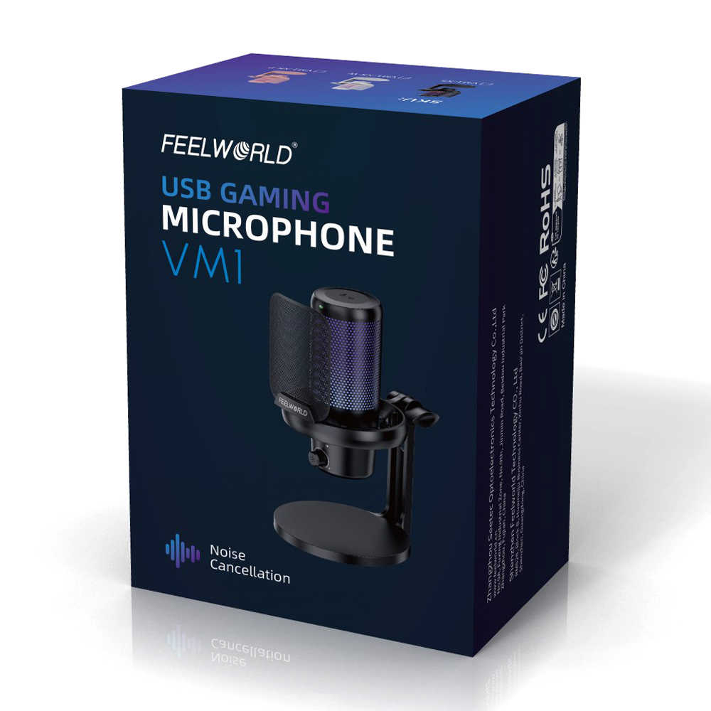 FEELWORLD VM1 USB麦克风专为游戏玩家设计,一键降噪技术消除了不必要的背景声音,使您能够与其他 游戏玩家清晰有效地交流。多种RGB灯效为您提供专属氛围,帮助您完全沉浸在游戏中,一键静音、音量 控制和实时监听功能将增强您的整体游戏体验。是游戏直播、游戏语音、游戏讲解的理想选择。