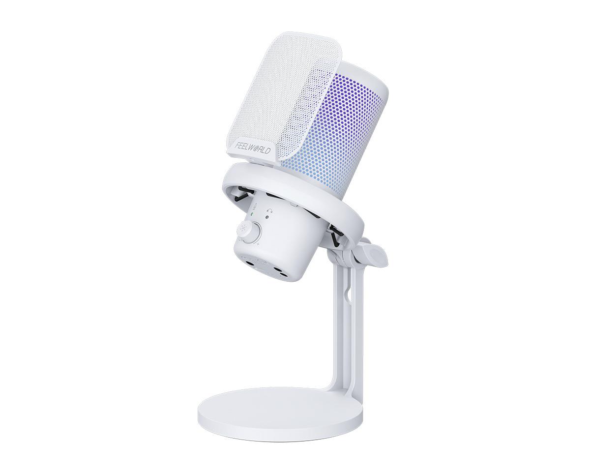 FEELWORLD VM1 USB电容游戏麦克风一键降噪 静音 心形指向 RGB灯效 桌面支架款(白色)