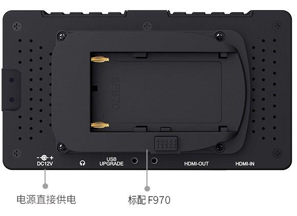 电源方面,F570侧面设有一个12V DC输入接口,背面还可安装电池扣板。您可以连接12V DC输入接口获得持续的电力,也可以通过背部的电池背扣安装电池实现移动式应用。同时F570支持多种电池扣板选择,F970(标配)、D28S/D54、LP-E6和U60多种电池背扣可选。
