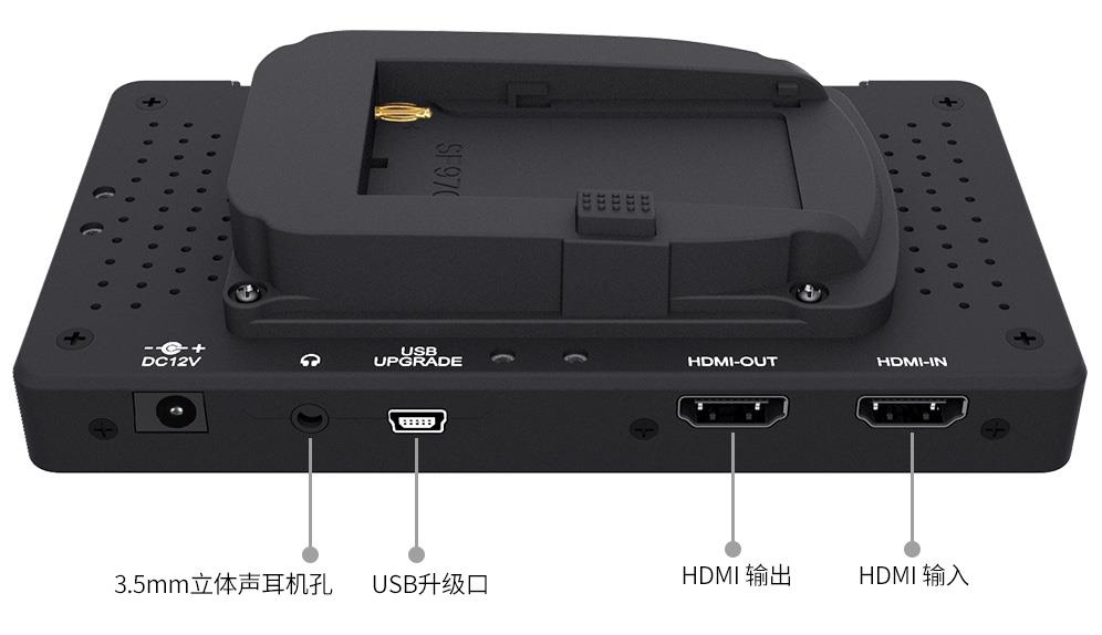 FEELWORLD F570小巧轻量化设计里面凝聚丰富的功能。它配备的4K HDMI输入输出接口,让您可以连接各种型号的4K摄影机进行监看,也可以将4K HDMI视频信号同步输出其它设备方便让导演跟摄影师同时观看。此外,您还可以通过3.5mm立体声耳机插口来监听音频,USB级口进行软件升级。