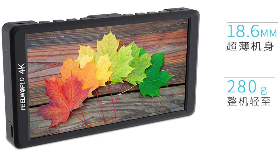 FEELWORLD F570拥有完善的功能和轻量化设计。轻巧坚固的铝金属外壳,18.6mm超薄机身,整机轻至280g,让您可以轻松持于掌中,也可以搭配手持稳定器使用,是配合手持稳定器拍摄的一款利器。