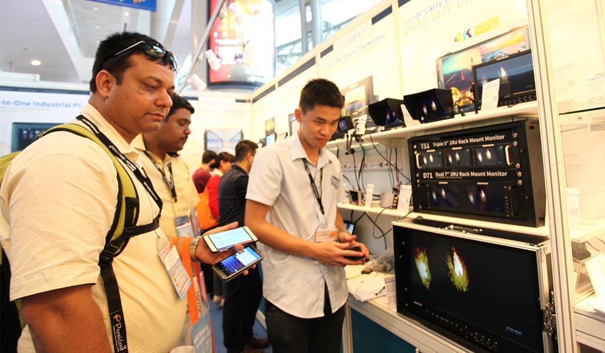 此次展会,视瑞特&富威德携带了一系列产品参展:广播级监视器,摄影监视器,转换盒,USB采集卡,机柜监视器,航拍监视器,触摸显示器,USB显示器,工业级显示器,液晶模组,工业嵌入式电脑等。