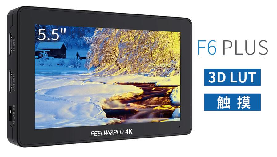 『F6 Plus』5.5寸3D LUT触摸监视器:5.5英寸IPS液晶面板,1920×1080;便携触摸屏控制,点按滑动间迅速调整设置;支持HDMI 1.4(4K30p)输入输出;支持NP-F / LP-E6双向电池插口供电;DC反供电设计,为相机提供电源;亮度直方图/音频柱/伪色彩/单色显示