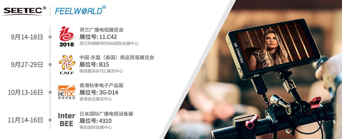 视瑞特将携旗下品牌监视器:FEELWORLD和SEETEC,为此次展会带来了丰富的产品展示。产品主要包括4K HDMI摄影小监、SDI摄影小监、4K摄影大监、专业级监视器、无线监视器、机柜监视器、提词器、无线图传、采集卡、转换盒等。这次展会视瑞特将为大家重点展示专为搭配稳定器设计4K 摄影小监和一体化无线监看解决方案。